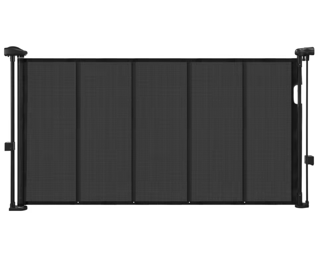 Available in 55”, 71”, and 110” widths, this retractable gate adapts easily to different openings, making it ideal for both small doorways and wide spaces.